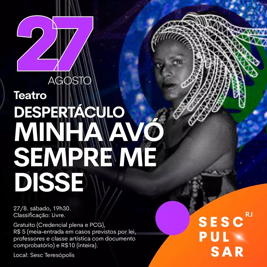 sáb 19h30 teatro Despertáculo Minha Avó sempre me disse do projeto Sesc Pulsar no Sesc Teresópolis RJ.